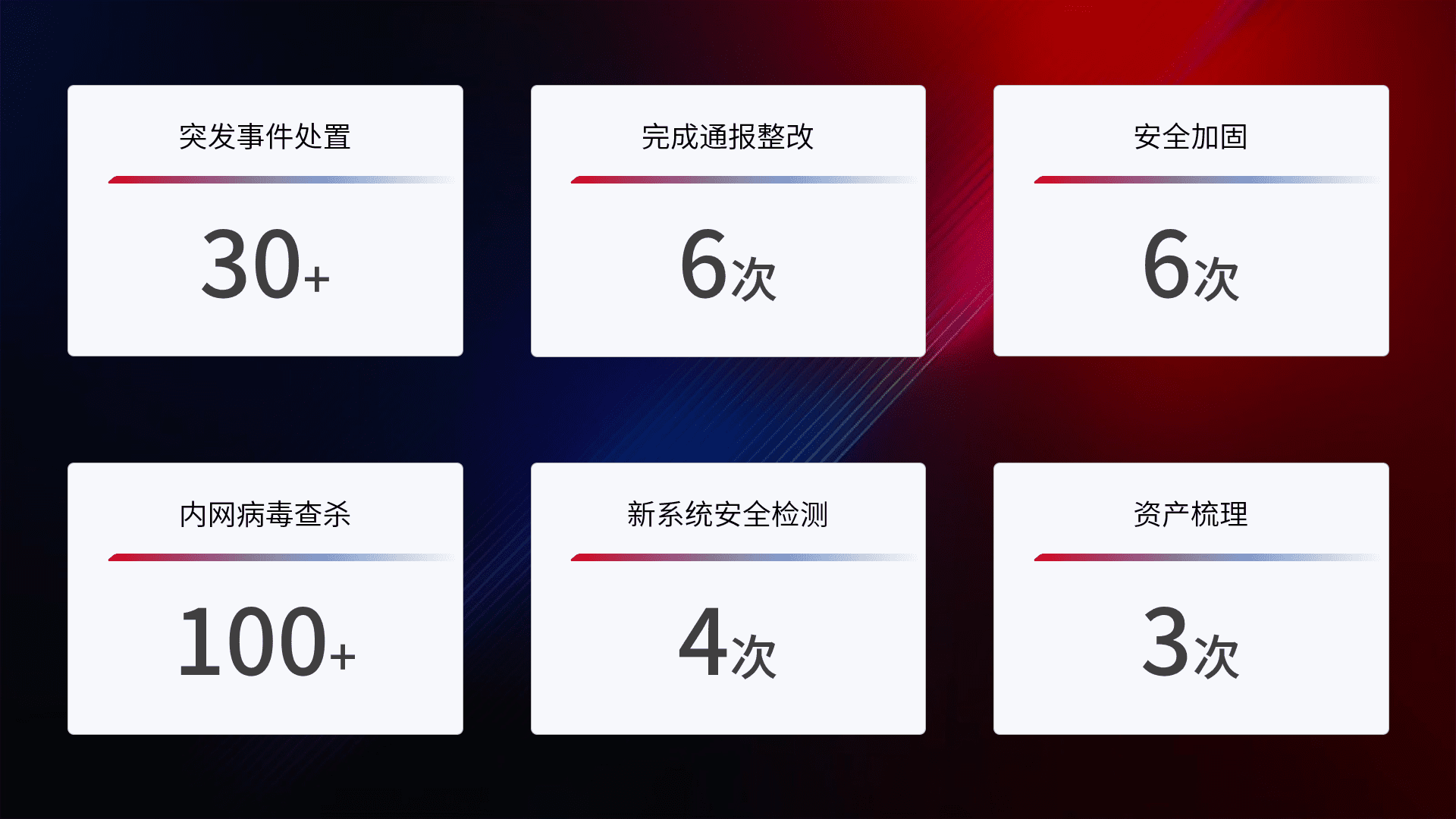 网络安全加固与风险管理:通过技术加固手段,,如加强区域隔离,,缩减攻击内网横向移动的范围;优化现有网络安全管理制度,,,,降低网络威胁暴露面,,,,减少被黑客攻击的可能性。。